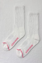 A thicker, ribbed leg adds bubbly texture while still maintaining support. The feel and design of the foot remain close to the Boyfriend Socks, featuring arch support and breathable mesh along the top.