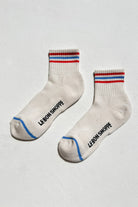The quarter-crew version of the signature Boyfriend Socks. The Girlfriend Socks feature a contrast triple stripe.