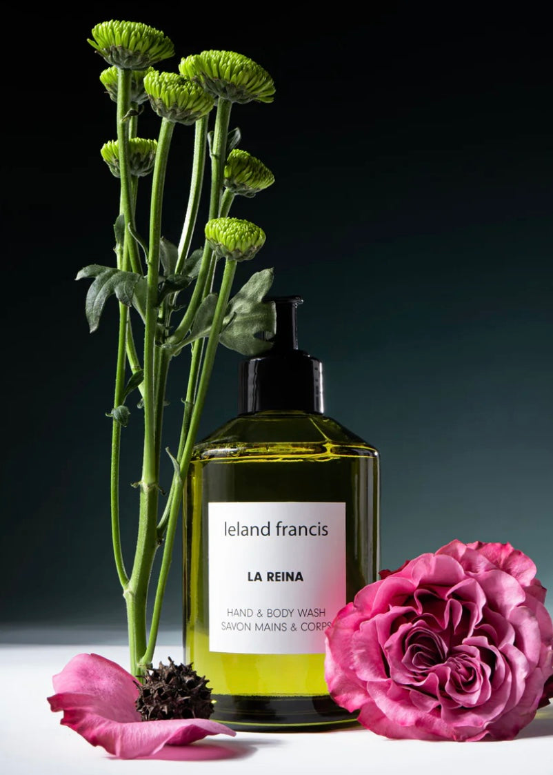 Elevate your daily ritual with the La Reina Hand and Body Wash by Leland Francis, presented in a sleek 300 mL glass bottle. This luxurious, eco-conscious cleanser gently cleanses and hydrates, leaving your skin soft, nourished, and delicately perfumed. The sophisticated fragrance blends warm and herbal notes of bergamot, sage, rose, geranium, labdanum, and patchouli for a truly elegant experience.