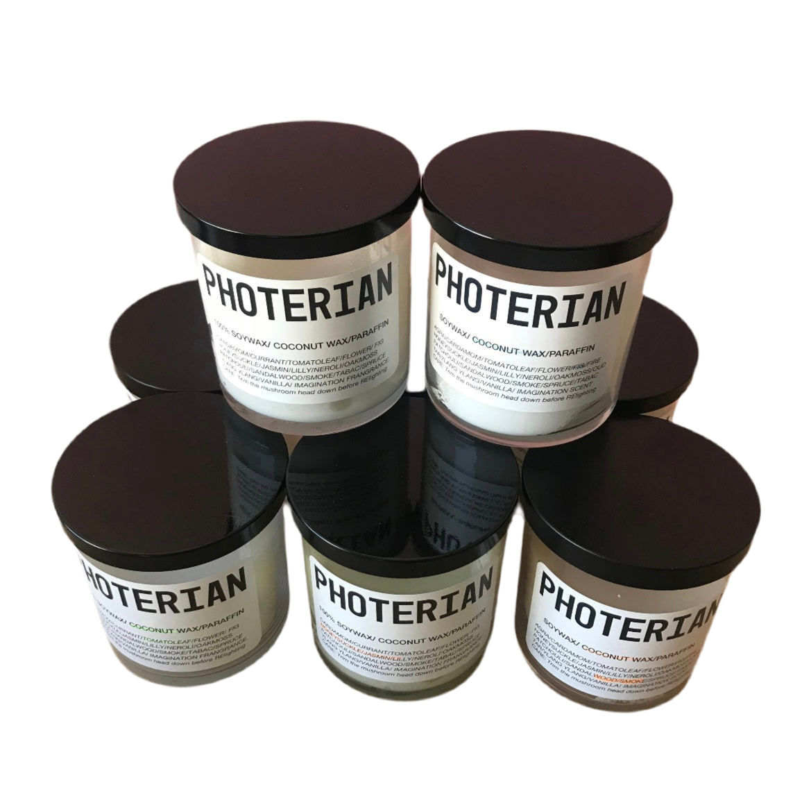 Coconut and soy wax candles. Photerian is a New York based perfumer specializing in essential oils, natural perfumes, candles and balms.