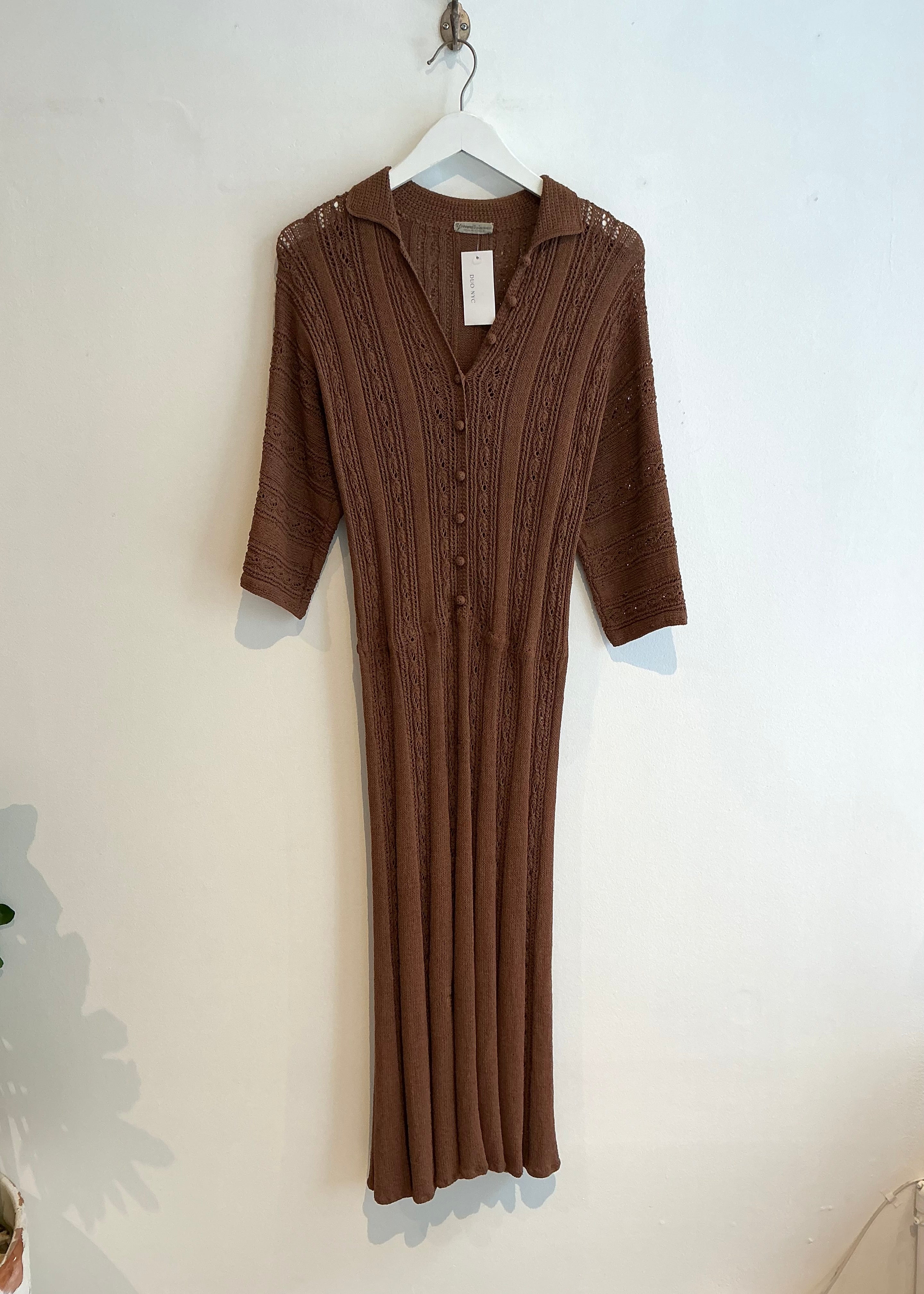 Vintage 1950s crochet knit dress. Lightweight with front button closure and collar. Excellent condition.