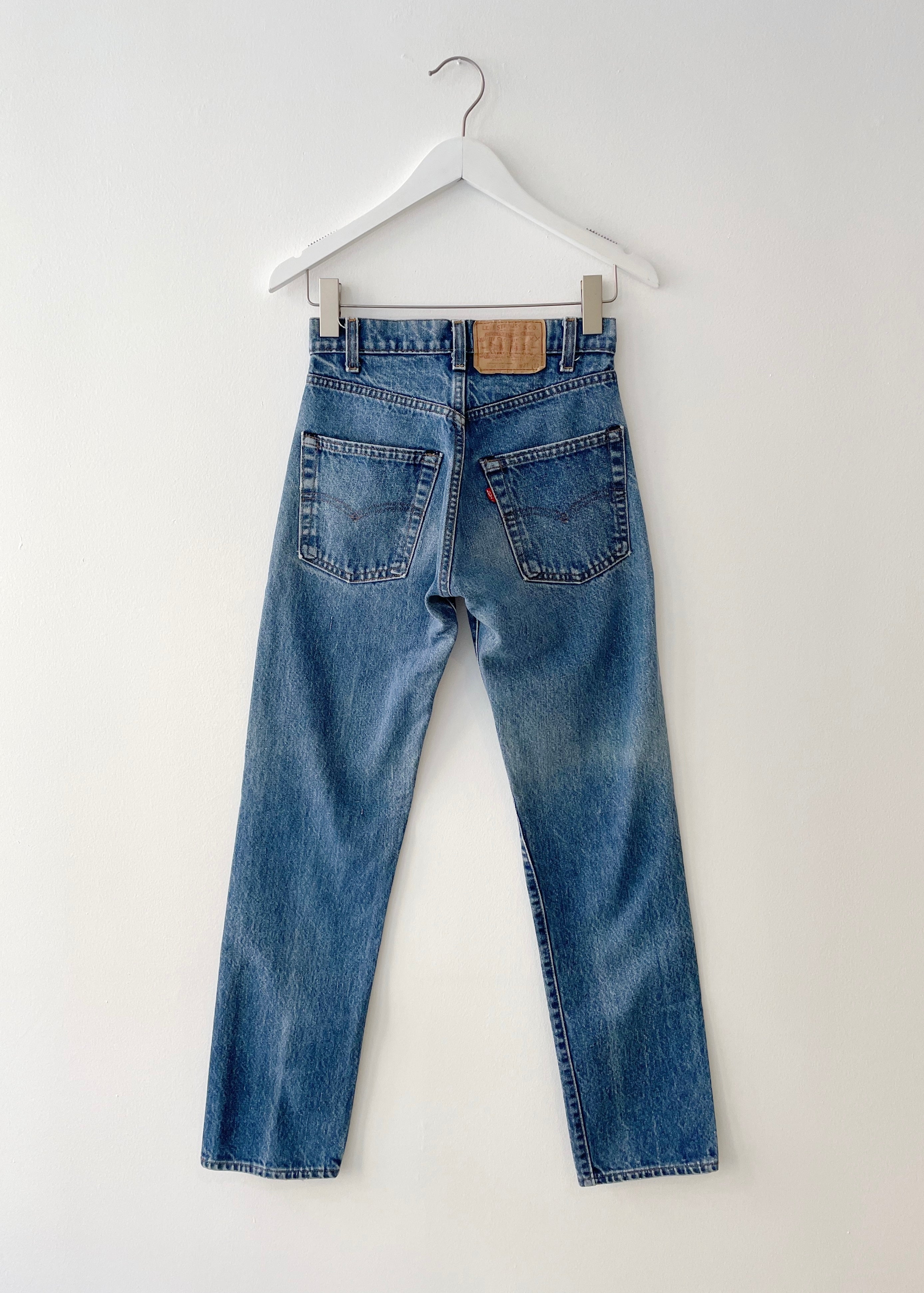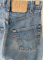 Vintage 505 red tab levis. Medium to dark wash, straight relaxed leg jeans. 5 pockets, 6 rivets. Zipper fly.
