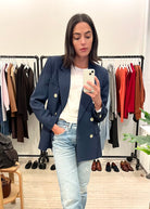 Vintage double breasted blazer. Front button closure. 2 front pockets. Fully lined.
