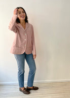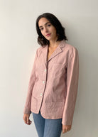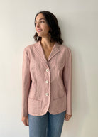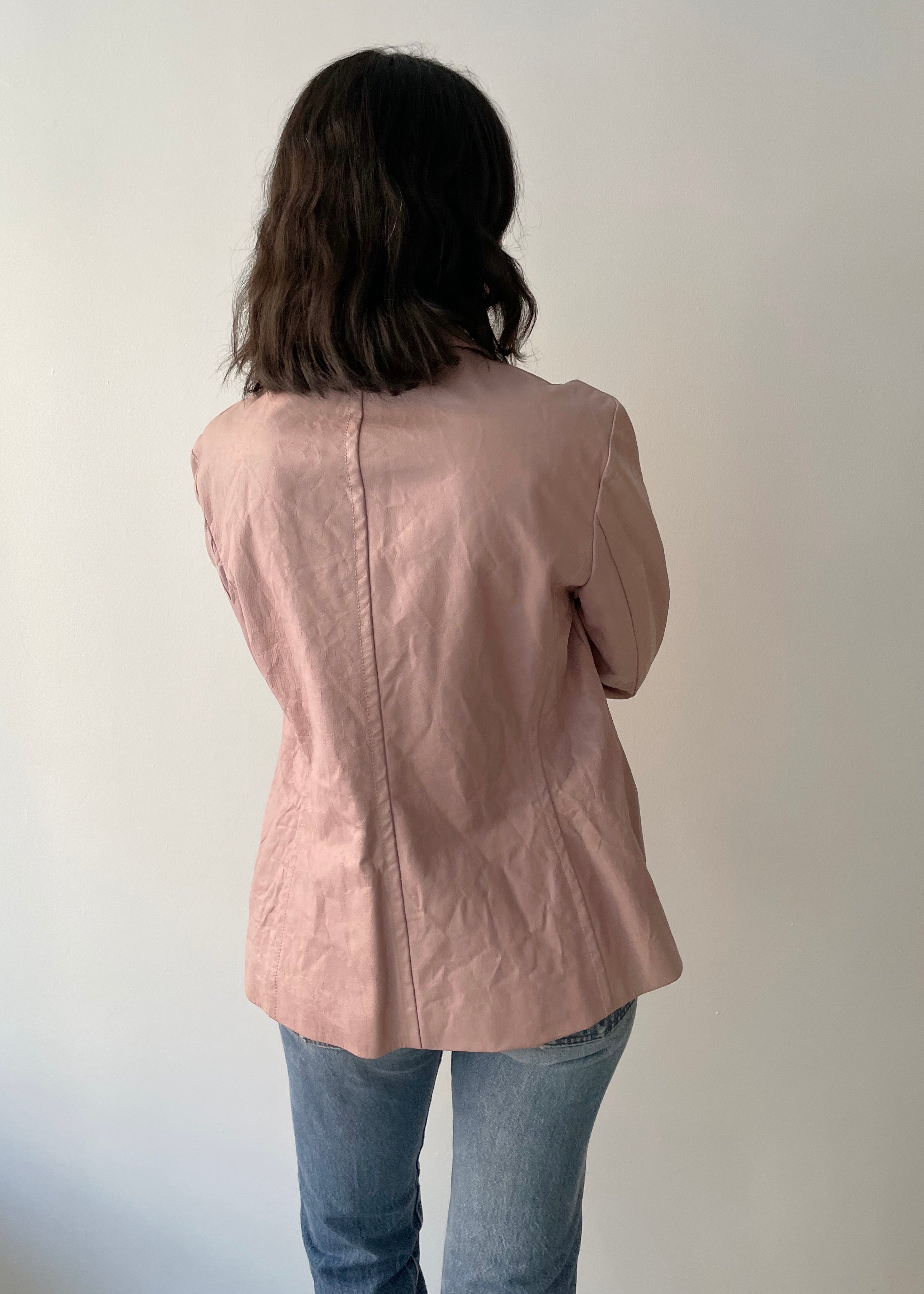 Vintage Jil Sander leather blazer. Baby pink crinkle texture. Lined.