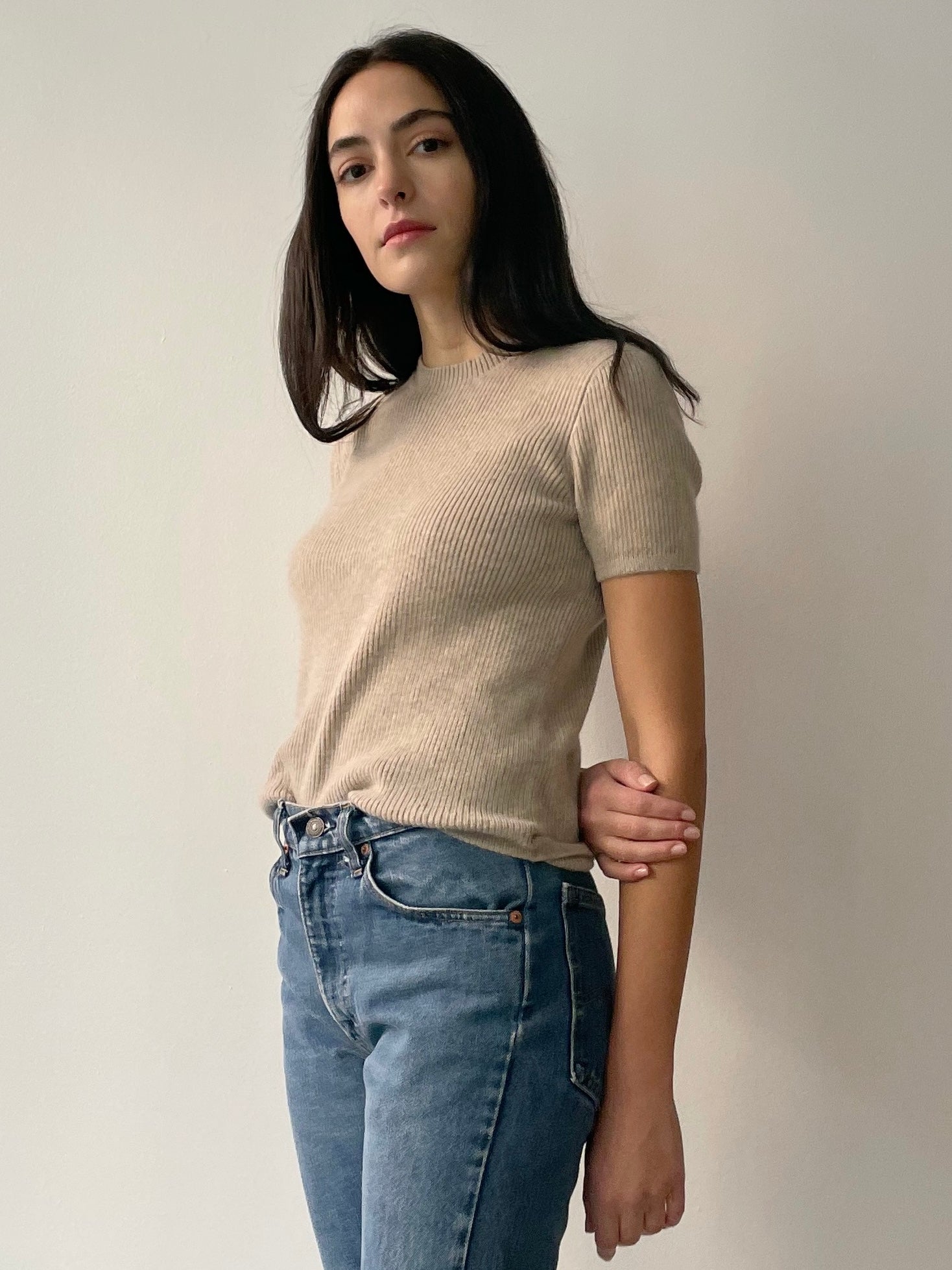 Vintage Armani ribbed cashmere tee. Crewneck with a slim fit. Excellent condition.