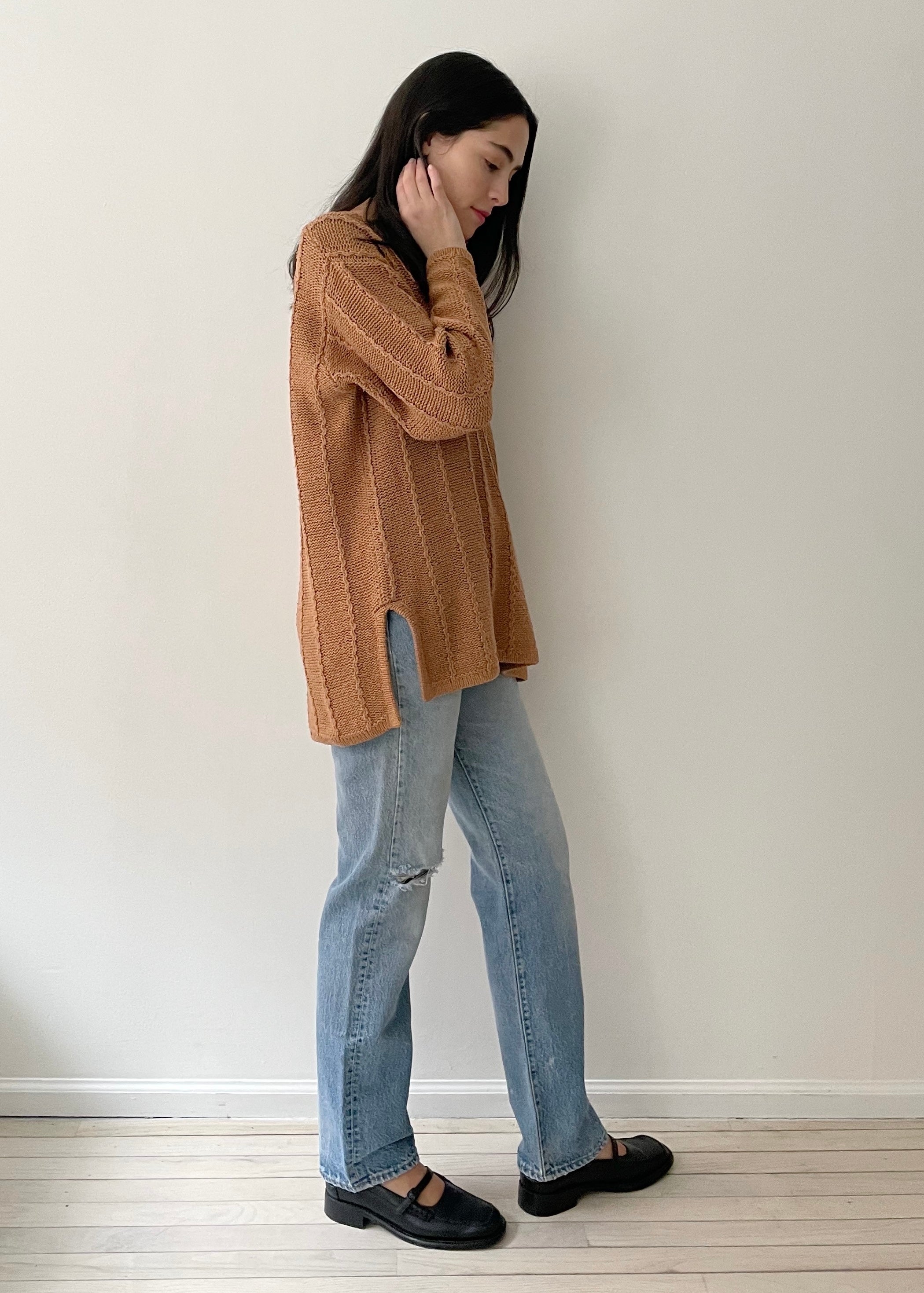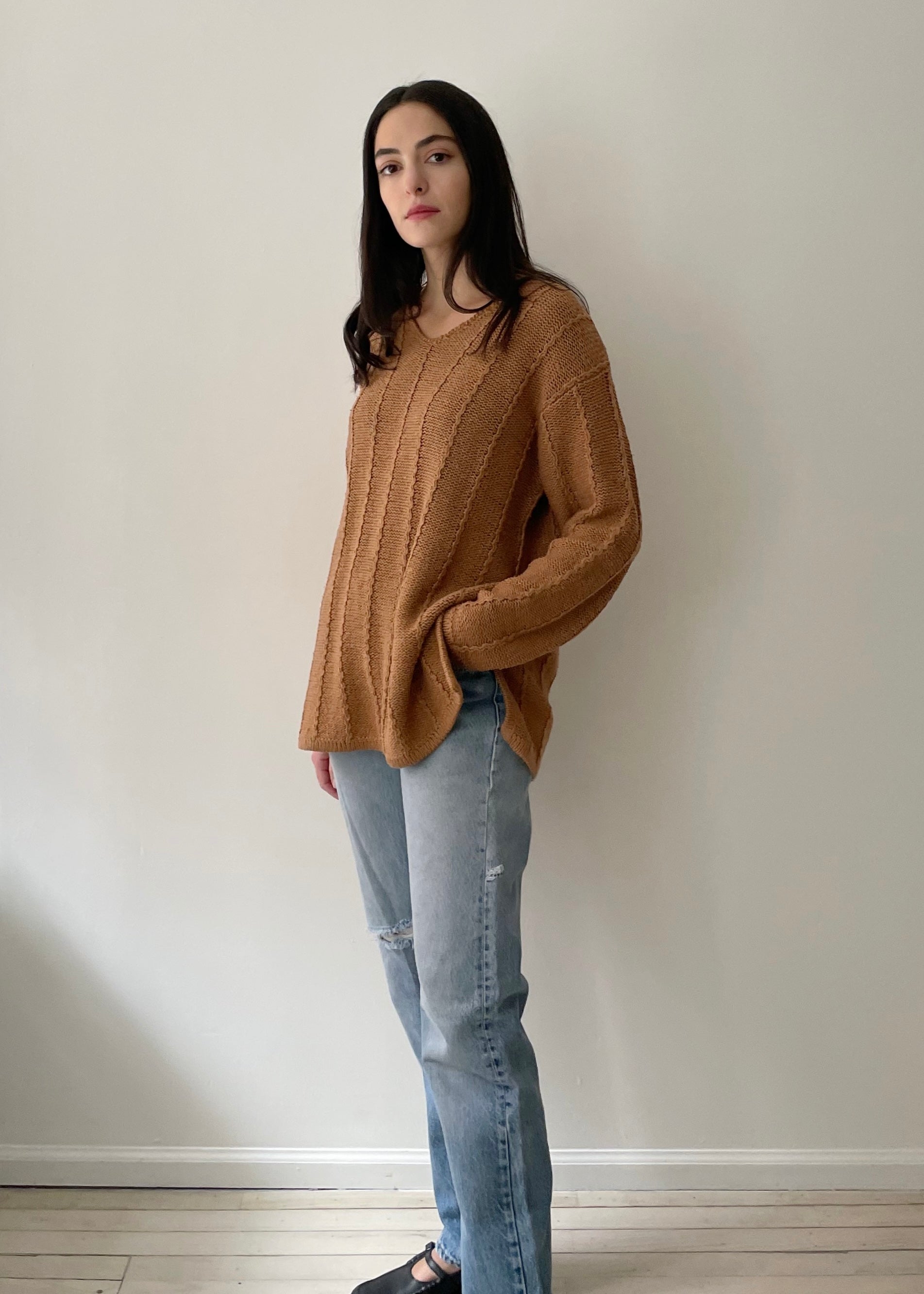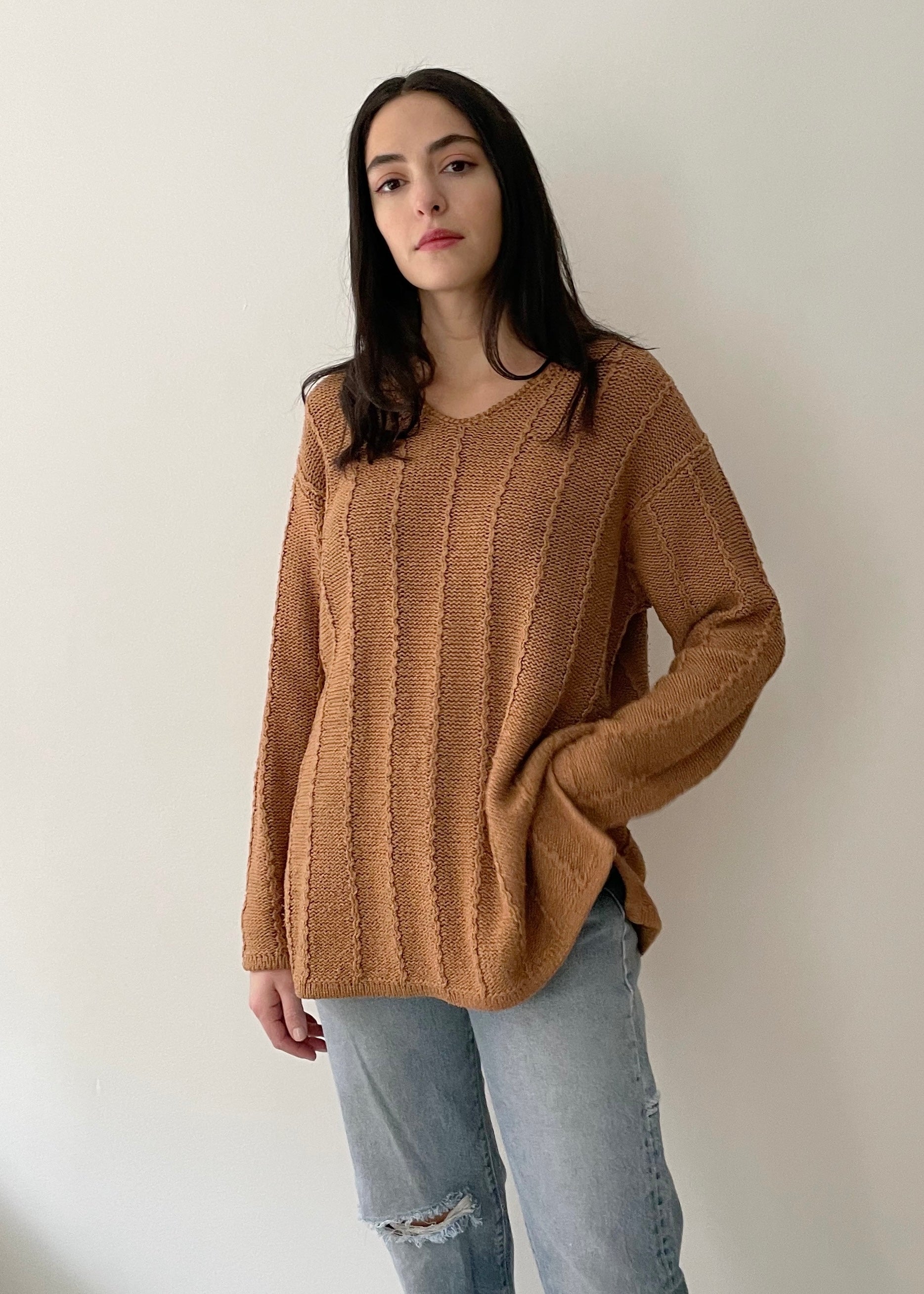 Vintage Saks Fifth Avenue silk knit sweater. Oversized menswear fit. Drop shoulder. Good Condition.