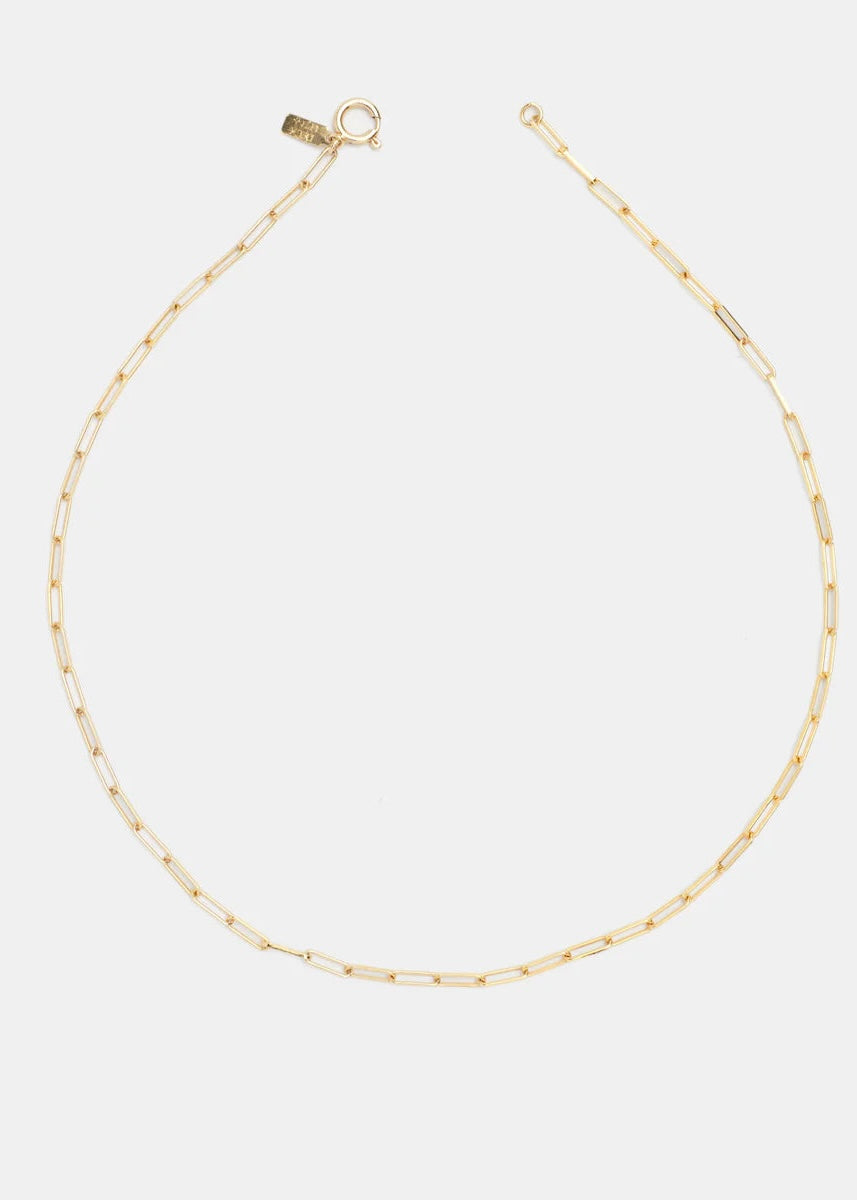 A chunky paperclip chain with an authentic, almost ancient feel; inspired by the fierce bejewelled goddesses of a mythical past. Wear it alone for a timeless look, or layered with other chains for a rich, bold feel.