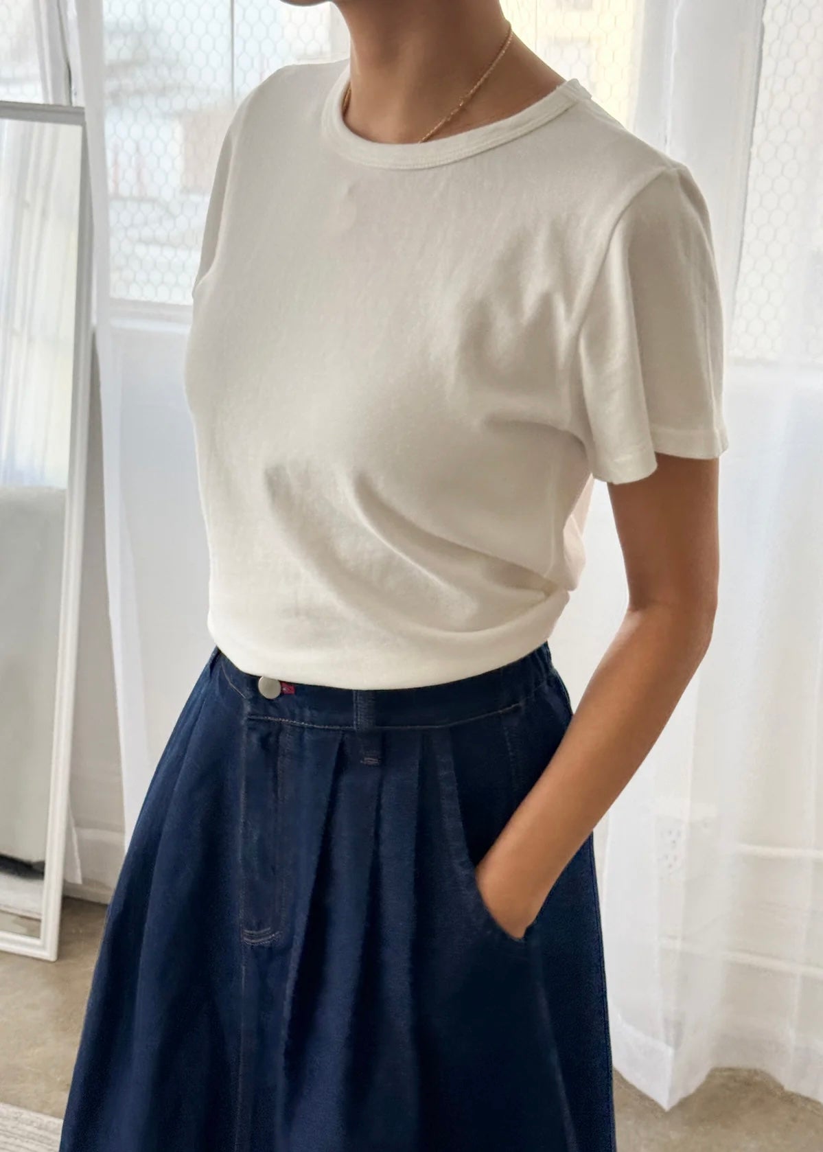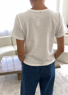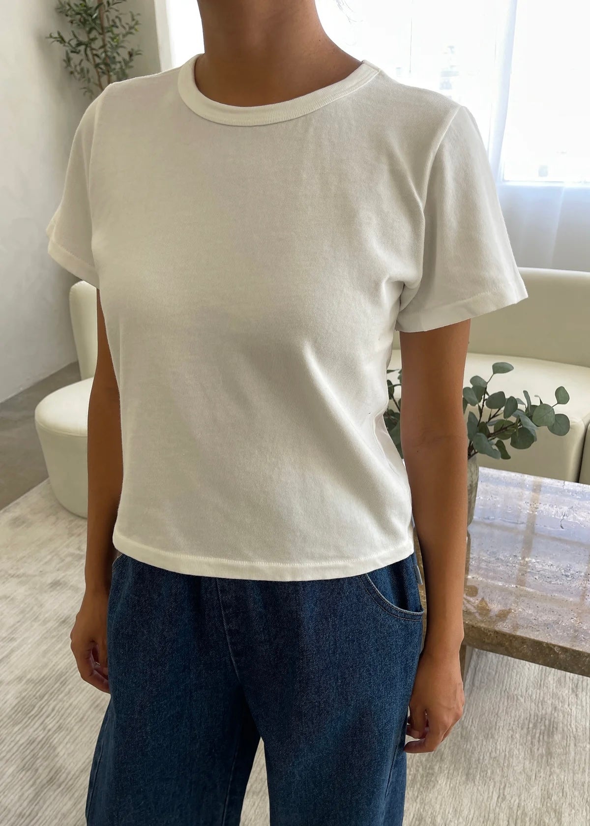 100% medium-weight cotton jersey tee in vintage white. Slightly cropped fit.