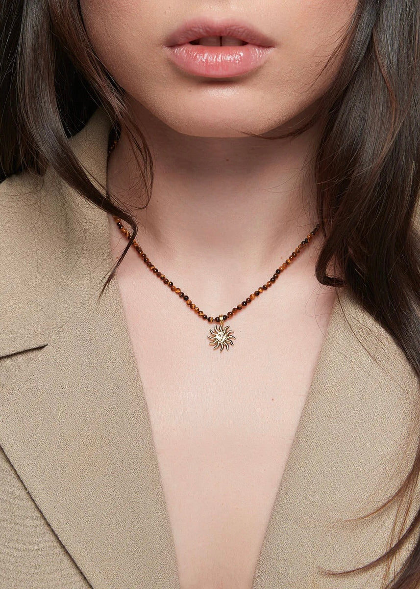 Solana Tiger Eye Choker 14k Gold Vermeil Pendant
