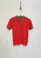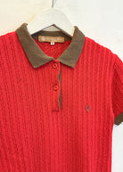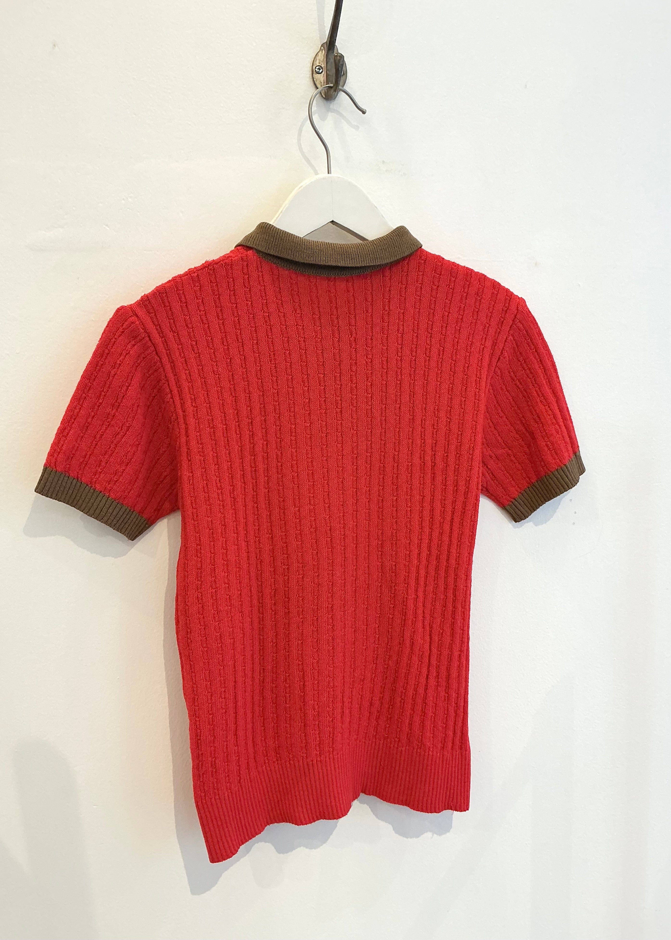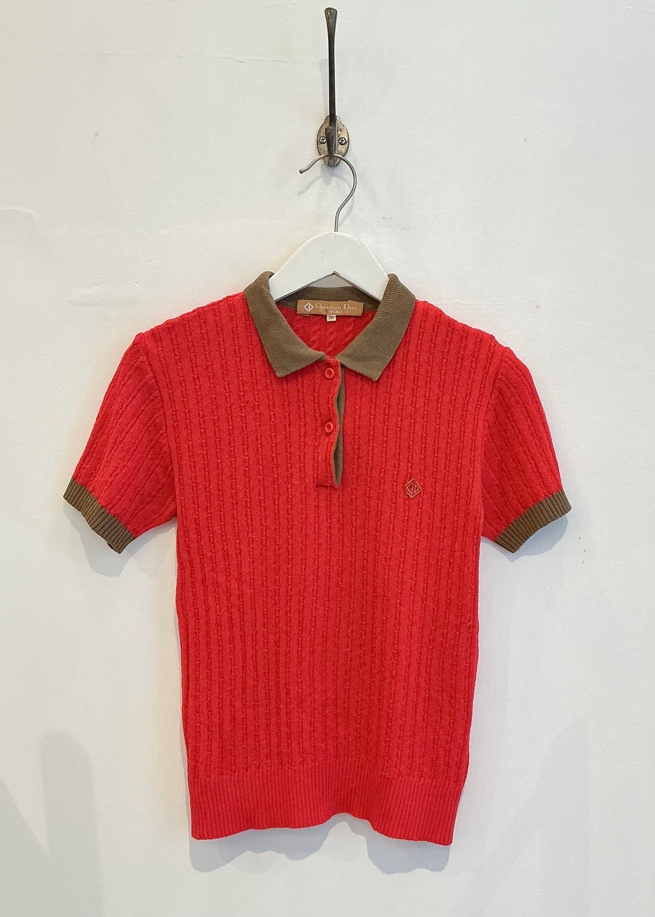Vintage 1970’s Christian Dior Sports ribbed knit polo top. Two front bottons with contrasting collar and sleeve cuff. Very good condition.