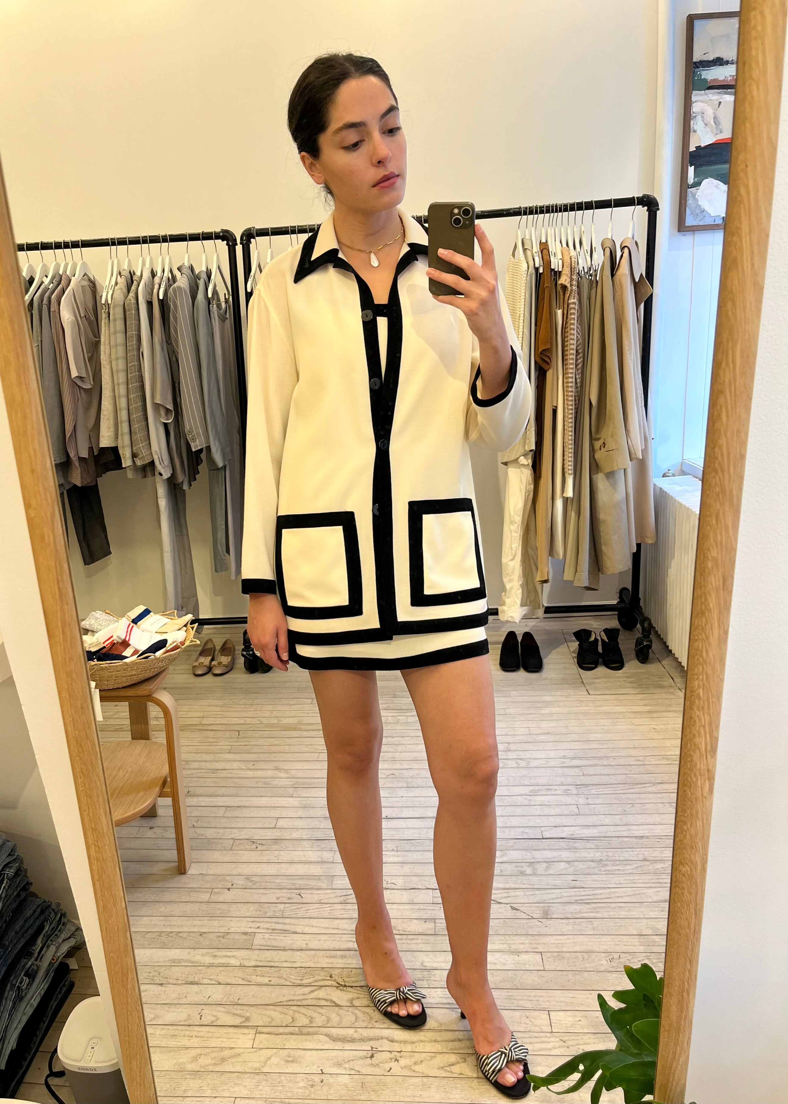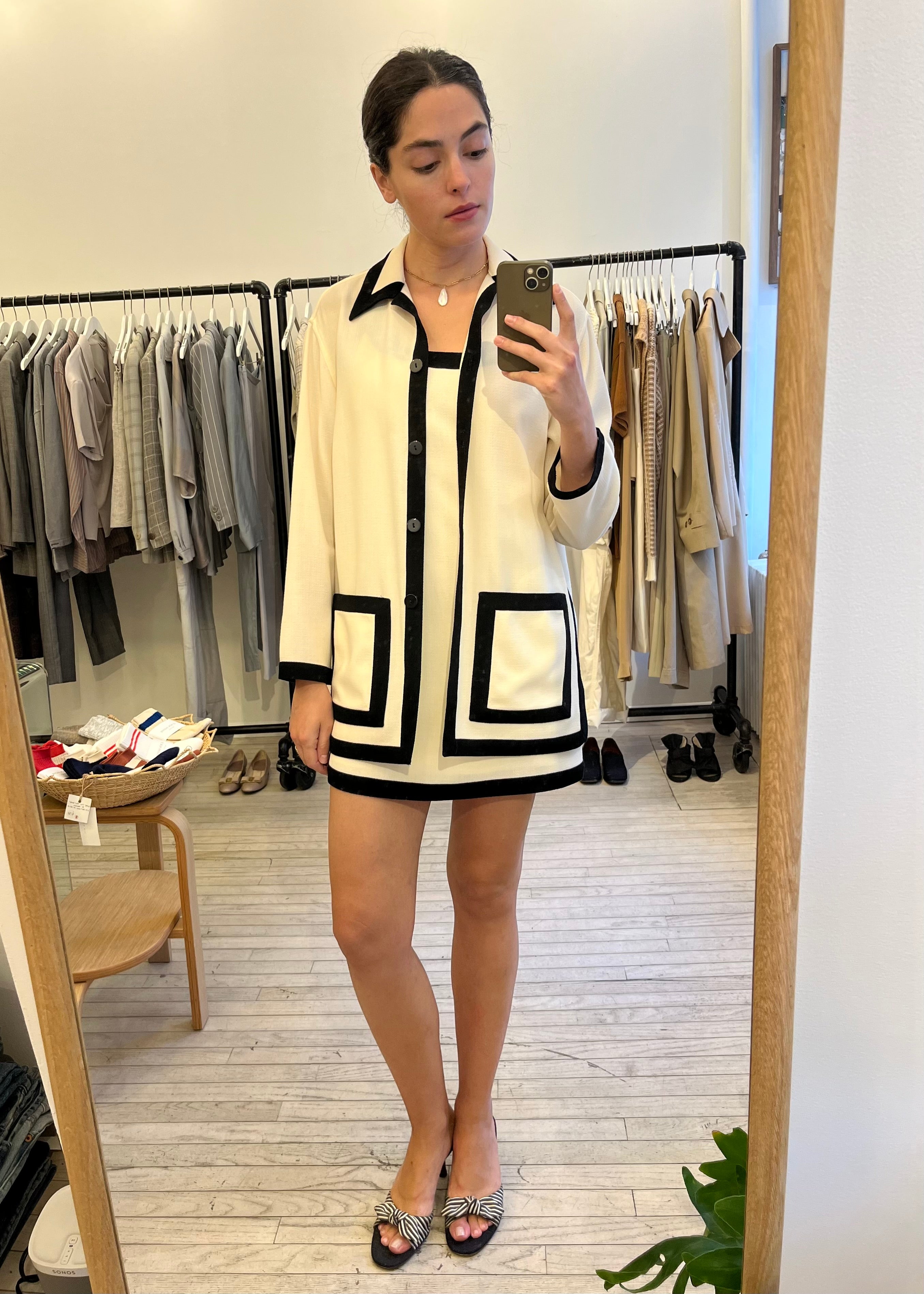 Vintage Emanuel Ungaro mini dress with blazer two piece set. Racer back dress with back zipper closure.